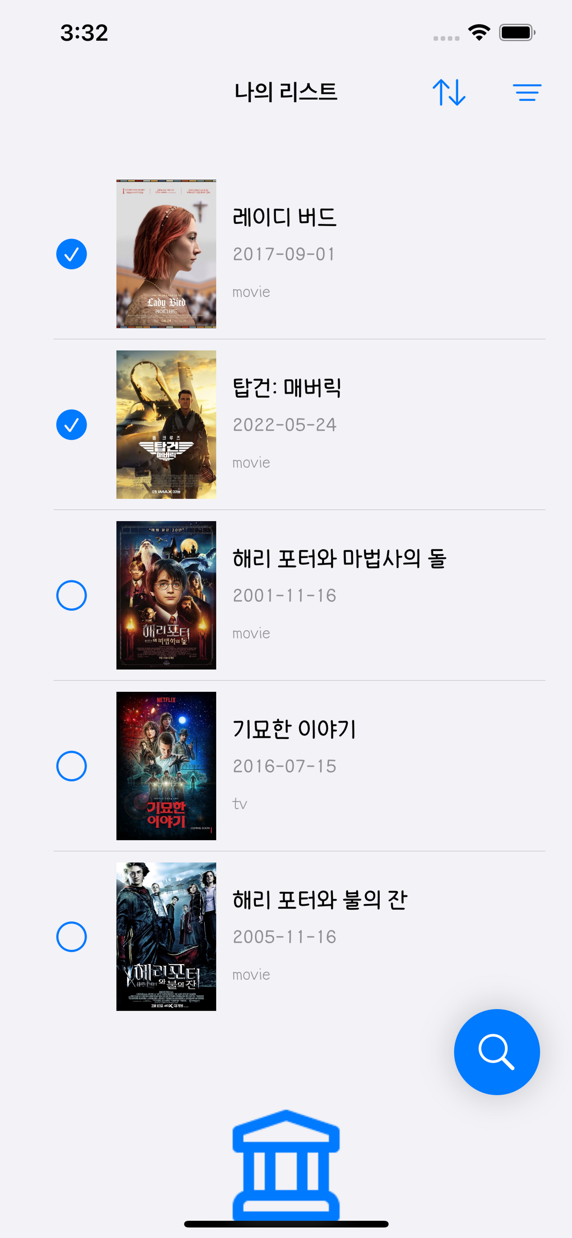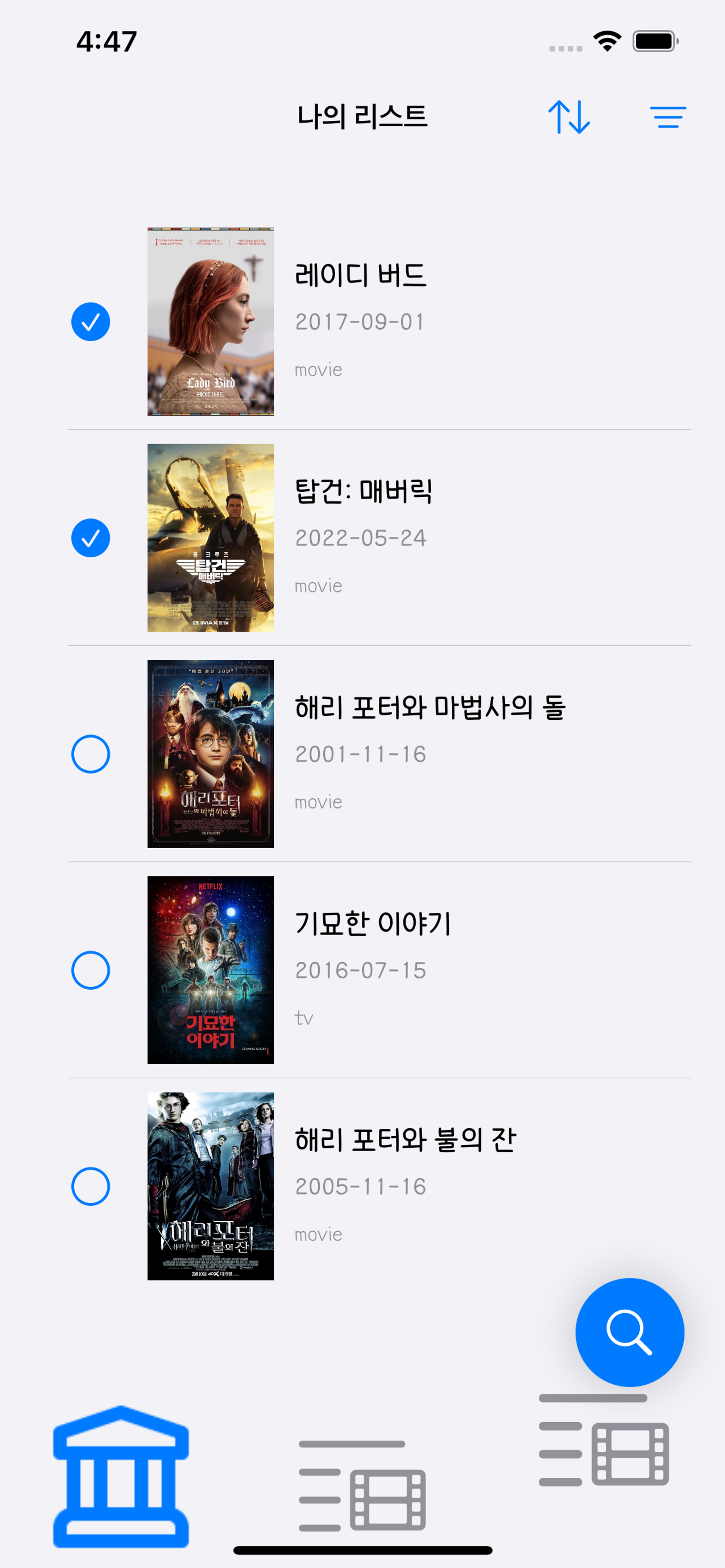 시청 여부를 체크할 수 있는 기능이 추가되었지만.. 탭 바 아이템의 이미지 아이콘 크기는 그대로다.