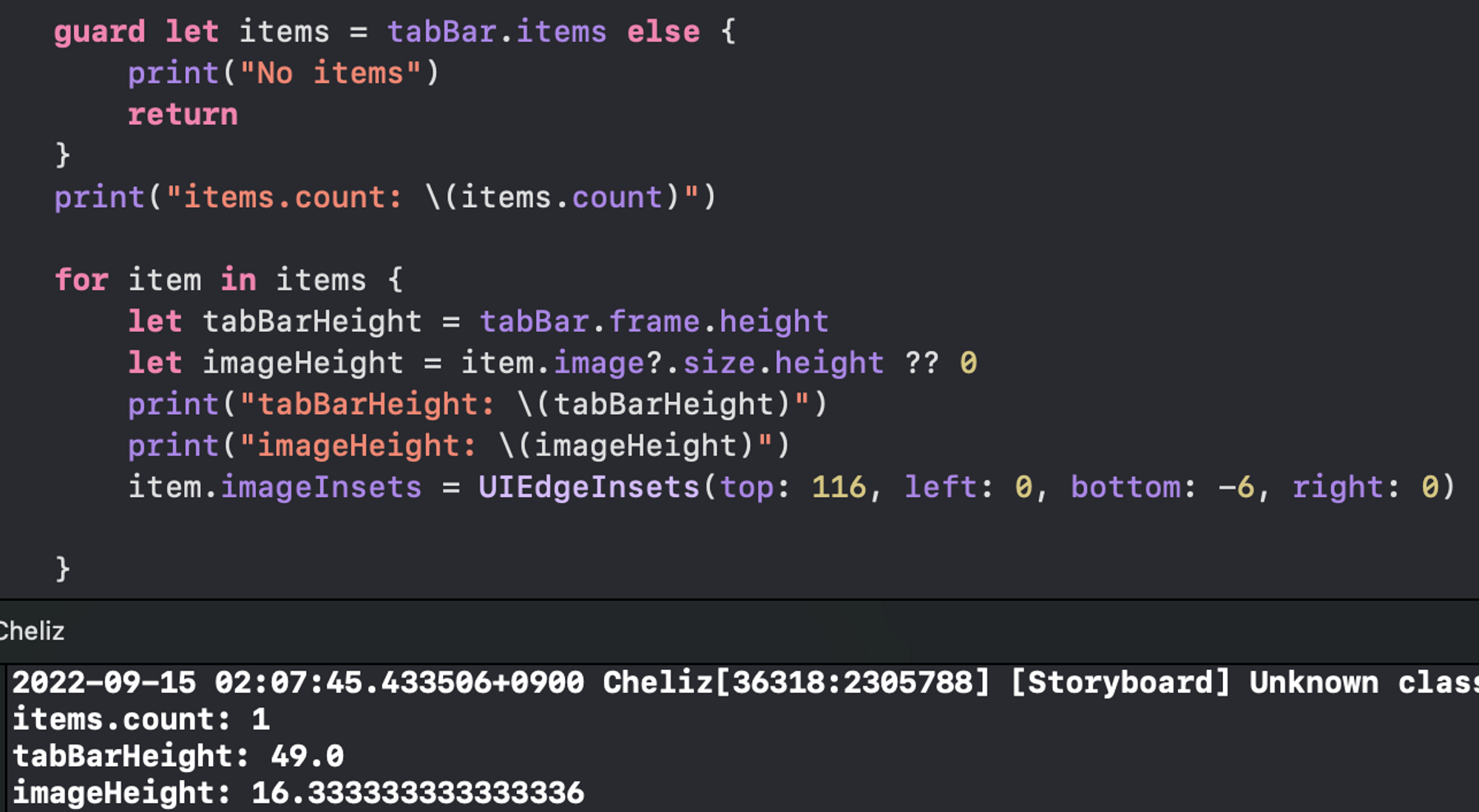 탭바에 등록한 뷰 컨트롤러(homeNC)의 tabBarItem.image에 이미지를 등록하고, tabBarItem.imageInsets를 변경해도,